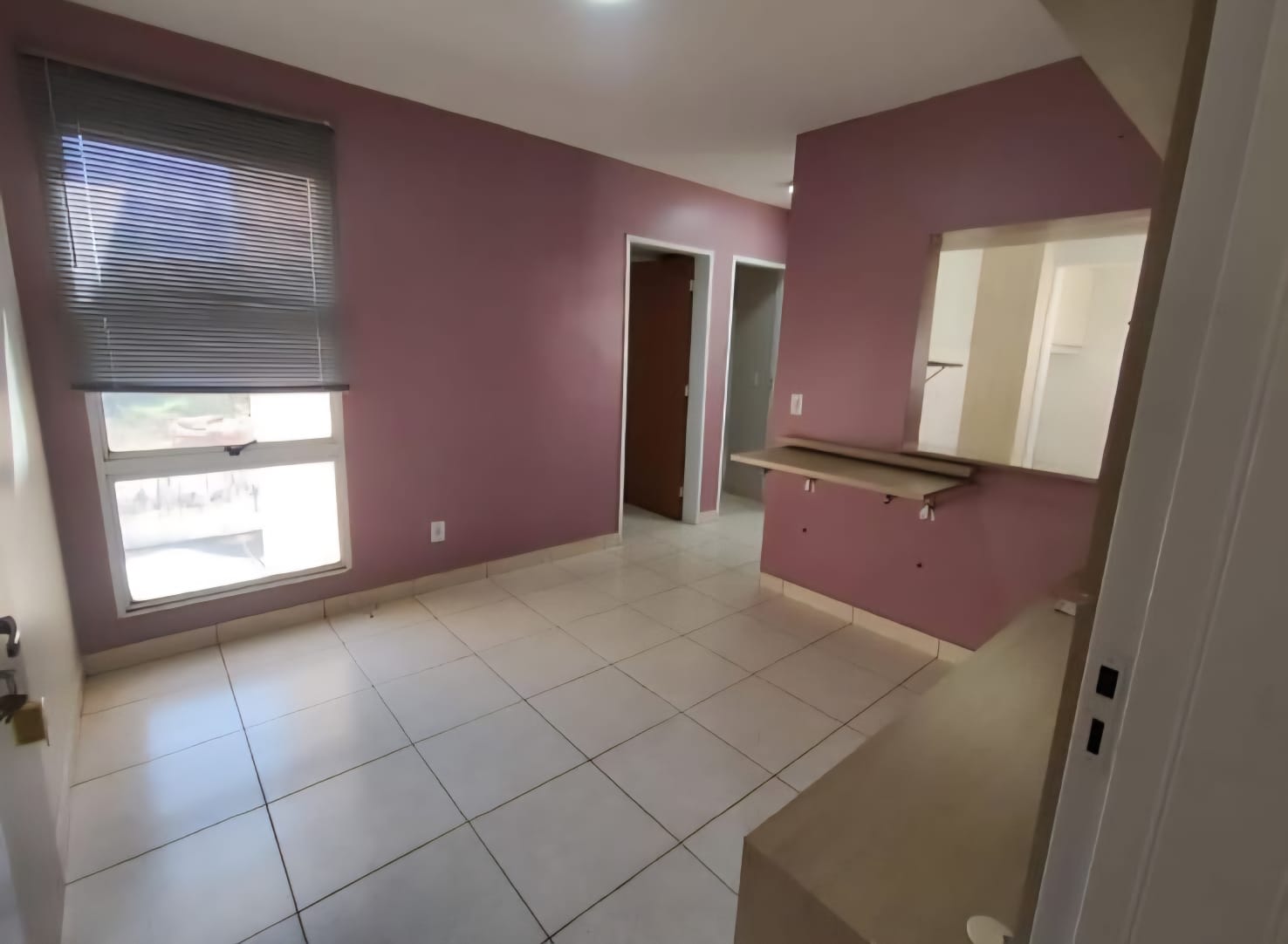 2 quartos, sala, cozinha, banheiro social, garagem para 1 carro.