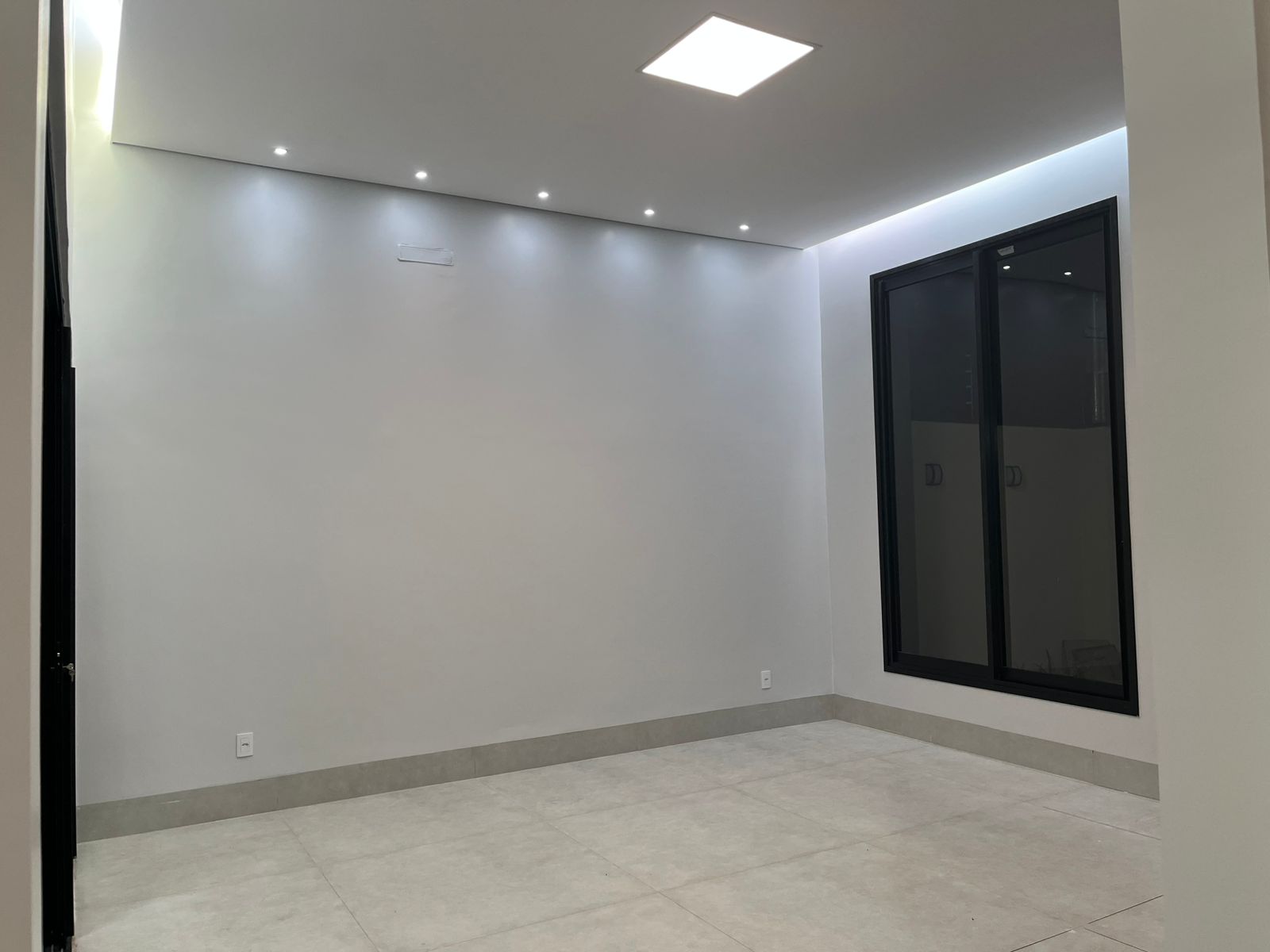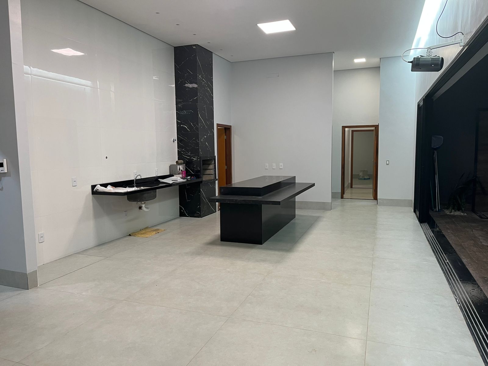 Sala de TV e área de lazer com pé direito duplo