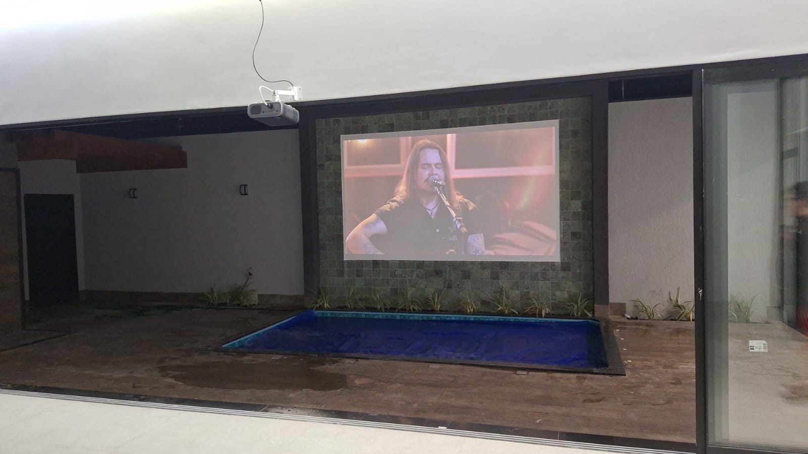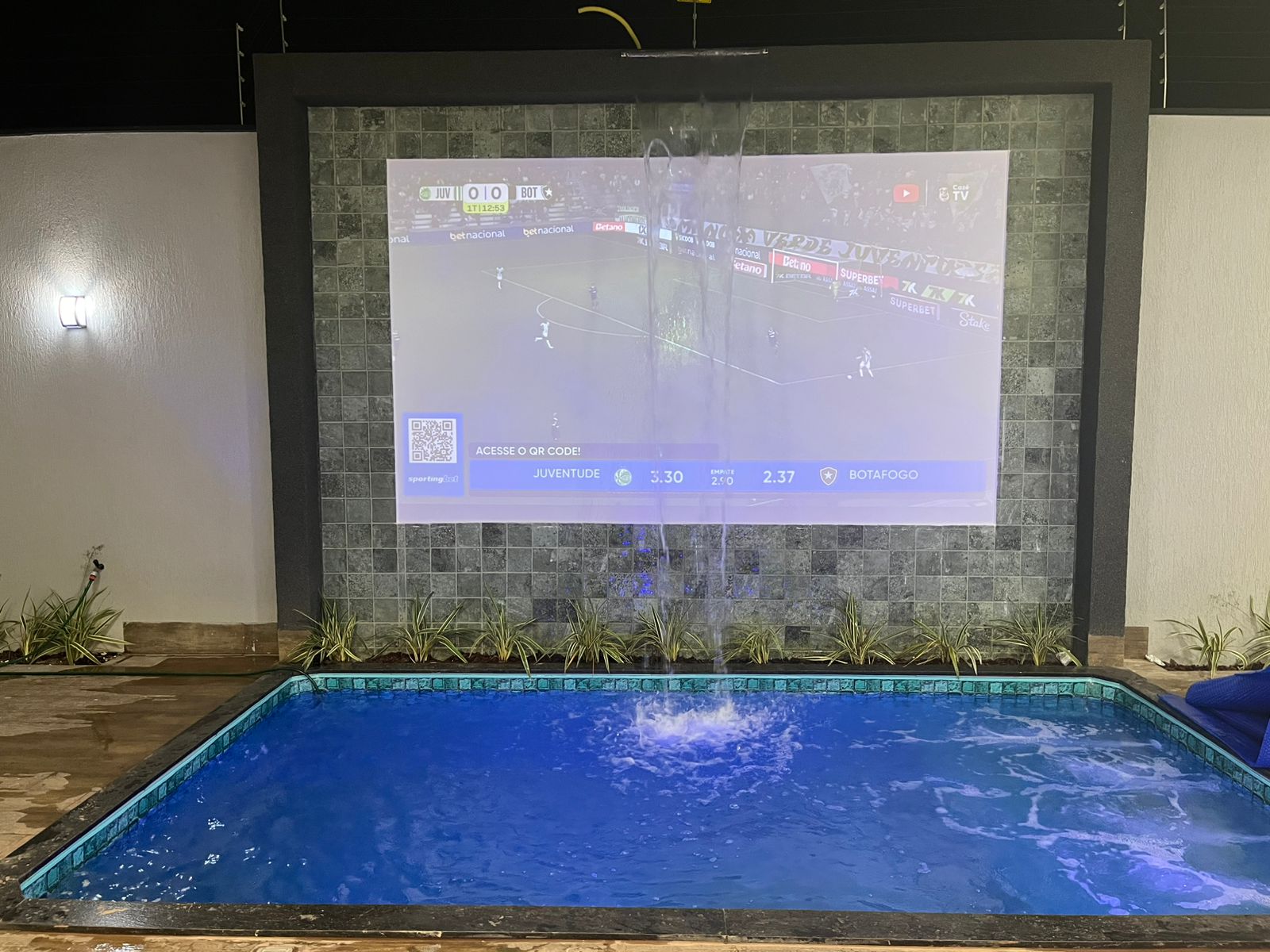 Piscina com cascata, tela para retroprojetor, hidromassagem e aquecedor